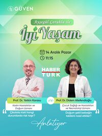 Habertürk ekranlarında yayınlanan “Ayşegül Çoruhlu ile İyi Yaşam” programının bu haftaki konukları, Güven Hastanesi Kadın Hastalıkları ve Doğum Uzmanı Prof.Dr.Yetkin Karasu ile Çocuk Sağlığı ve Hastalıkları ve Neonatoloji Uzmanı Prof.Dr.Didem Aliefendioğlu.