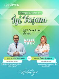 Habertürk ekranlarında yayınlanan “Ayşegül Çoruhlu ile İyi Yaşam” programının bu haftaki konukları, Güven Hastanesi Kardiyoloji Uzmanı Doç.Dr.Uğur Abbas Bal ile Nöroloji Uzmanı Uzm.Dr.Özlem Gökdemir